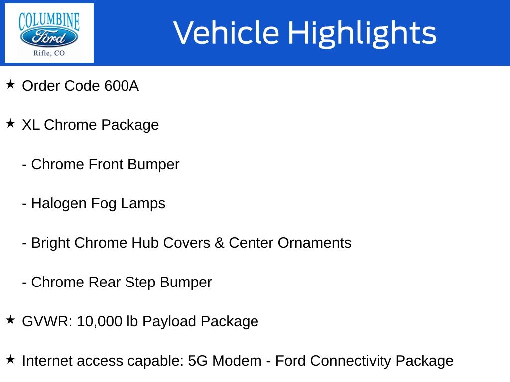 - Internet access capable: 5G Modem – Ford Connectivity Package