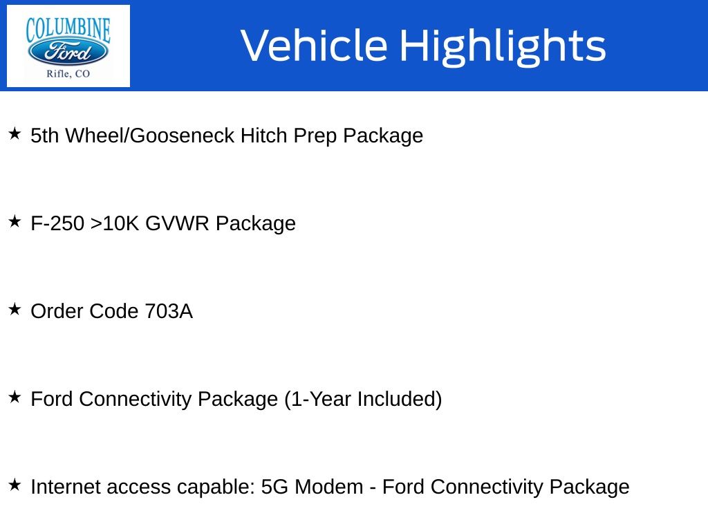 - Internet access capable: 5G Modem – Ford Connectivity Package