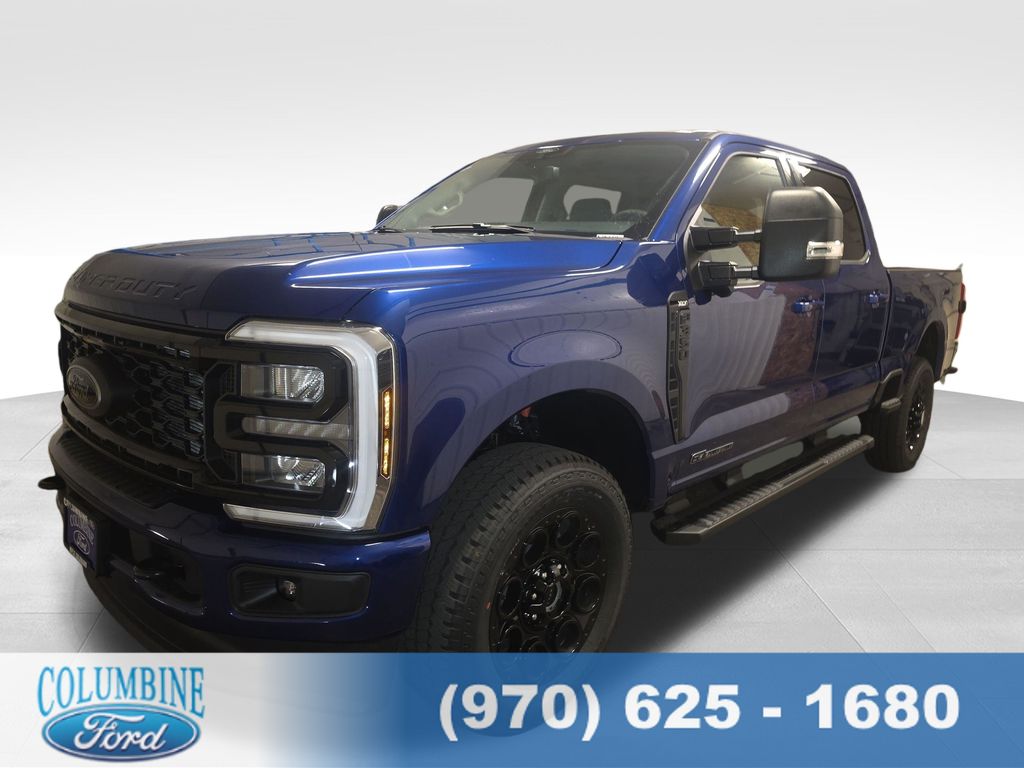 The exterior of the F-350SD XLT boasts a bold and rugged presence, with a sleek Blue finish that commands attention. Complementing the striking look are premium features like LED fog lamps, a chrome grille, and power-folding mirrors with integrated turn signals.