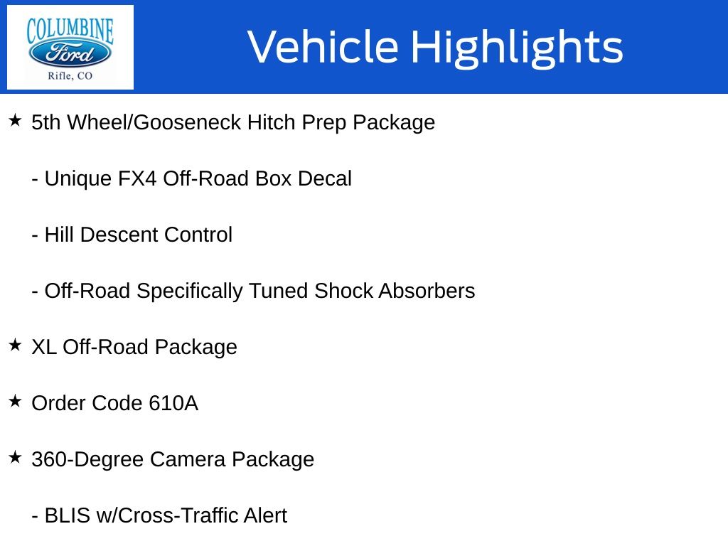 Imagine the possibilities with this powerful and versatile truck in your fleet. Schedule a test drive today and experience the difference for yourself. At Columbine Ford, we’re committed to providing our customers with the best vehicles and the highest level of service. Visit us at 2828 Railroad Ave., Rifle, CO 81650 or call 970-625-1680 to learn more.
