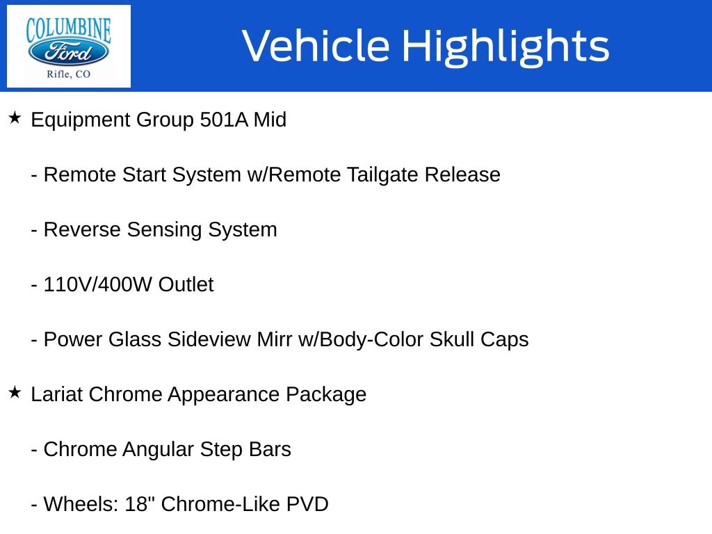 The LARIAT trim level elevates the F-150 experience with premium amenities and thoughtful conveniences. Enjoy the convenience of the remote start system, which allows you to warm up the cabin or cool it down before you even step inside. The voice-activated navigation system with pinch-to-zoom capability ensures you’ll always find your way, while the 110V power outlet provides the flexibility to power your devices on the go.